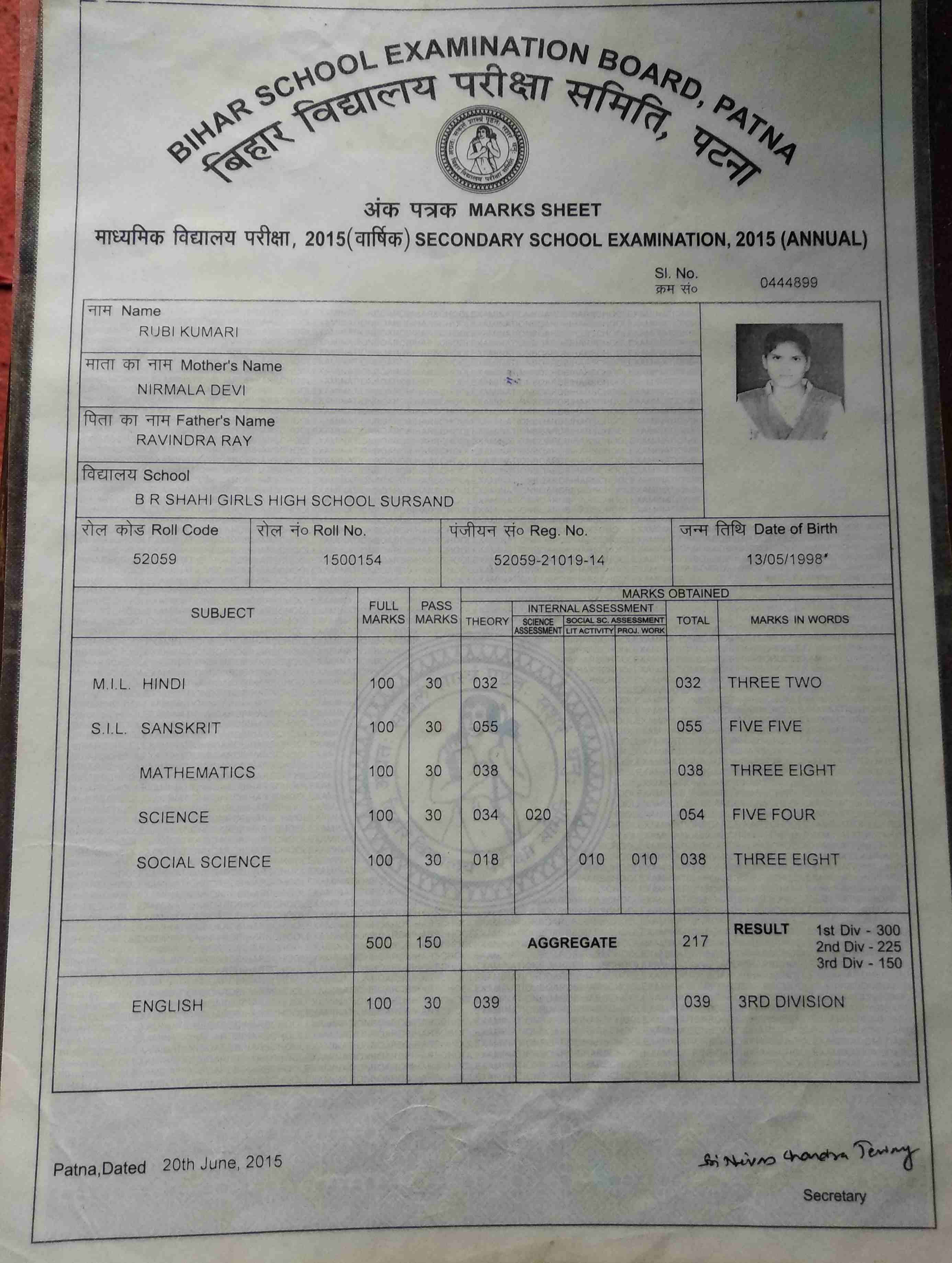 | Exam | Full Marks | Pass Marks | Marks Obtained |