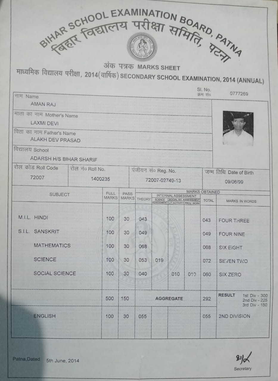 | Exam | Full Marks | Pass Marks | Marks Obtained |