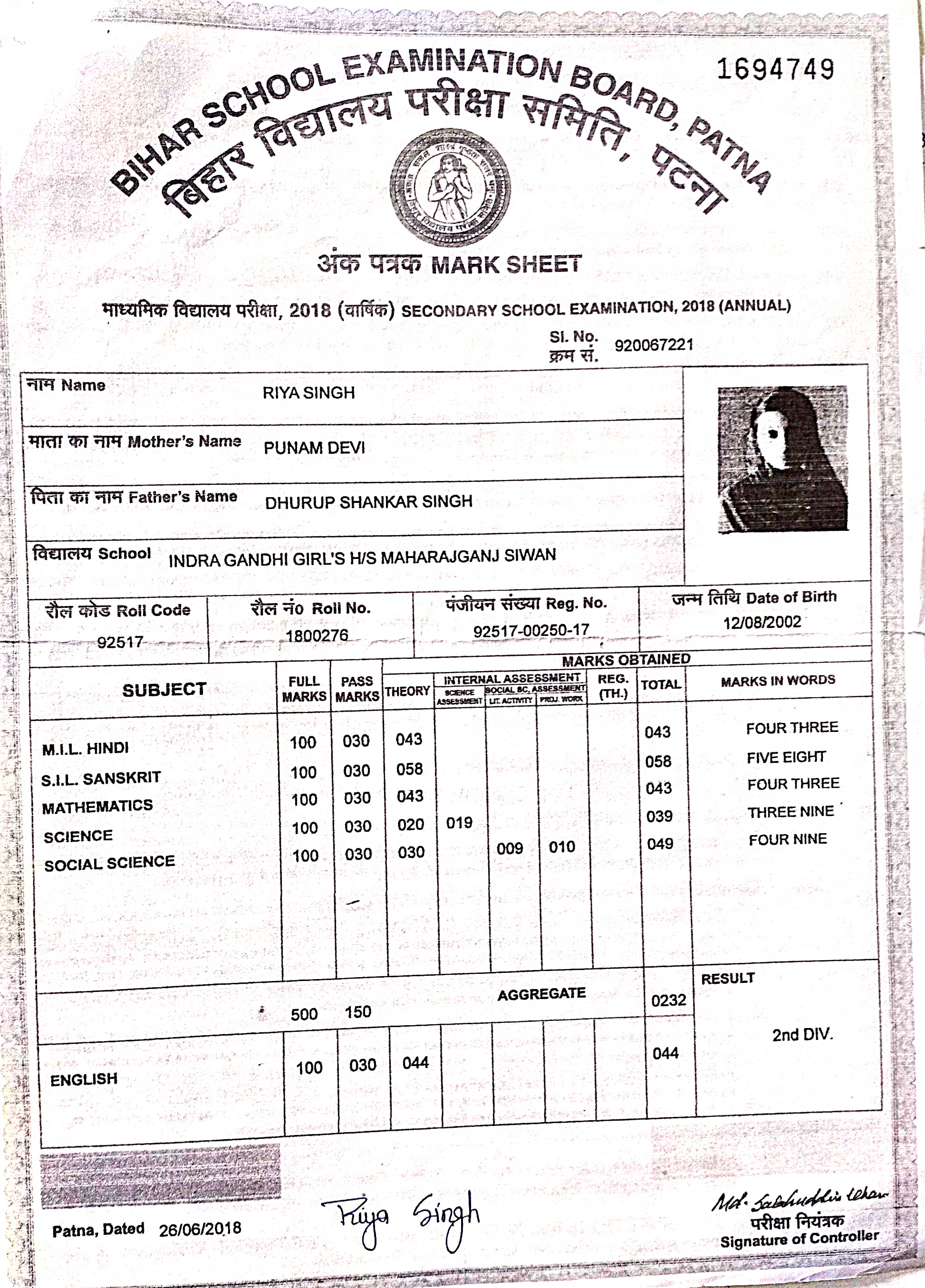 | : | Dhurup Shankar Singh | |