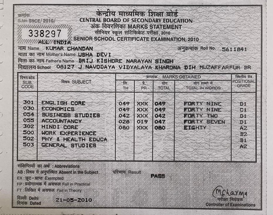 | Exam | Full Marks | Pass Marks | Marks Obtained |