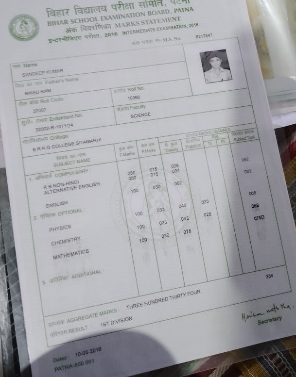 | Exam | Full Marks | Pass Marks | Marks Obtained |