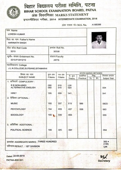 | Exam | Full Marks | Pass Marks | Marks Obtained |