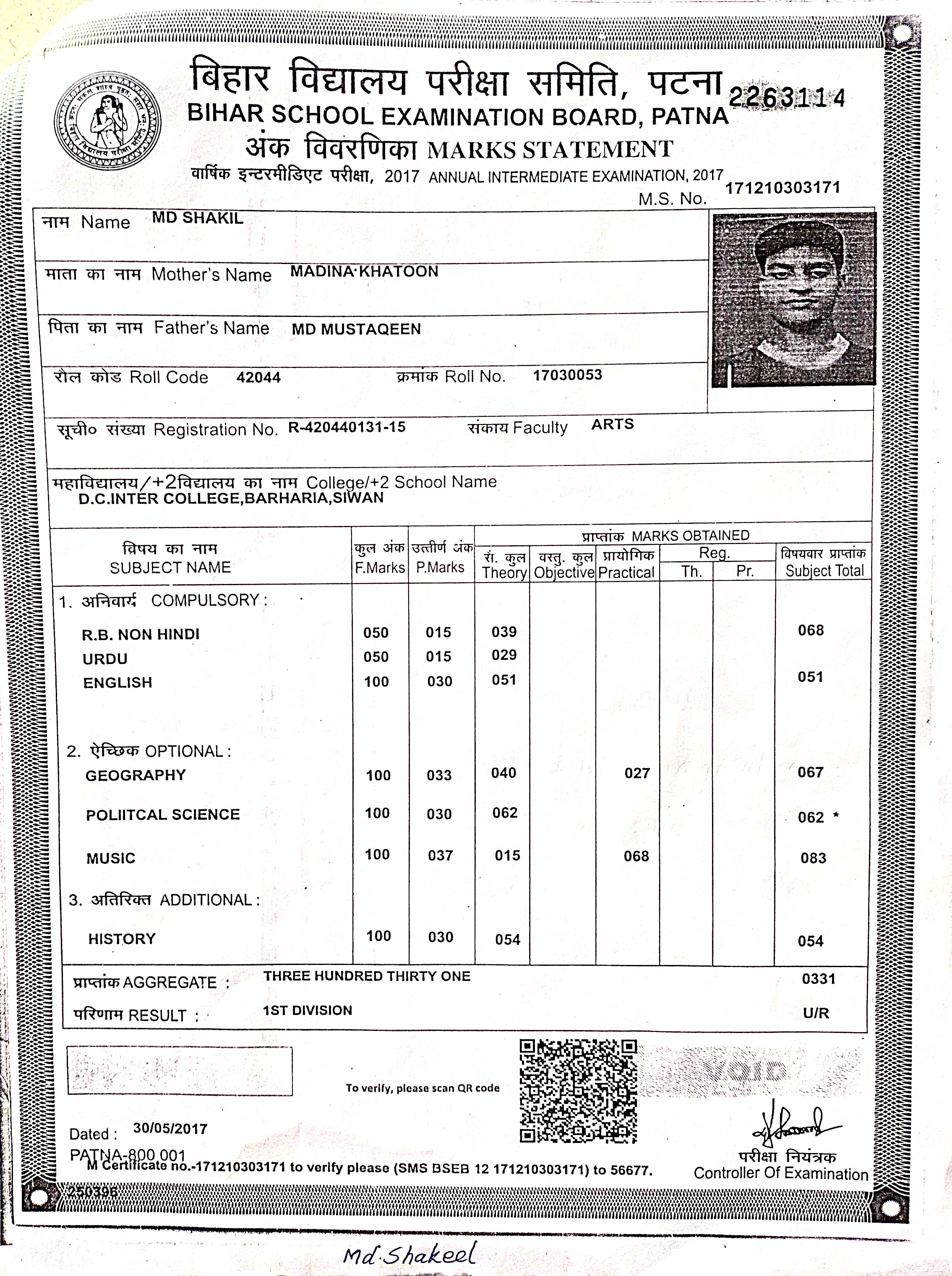 | Exam | Full Marks | Pass Marks | Marks Obtained |