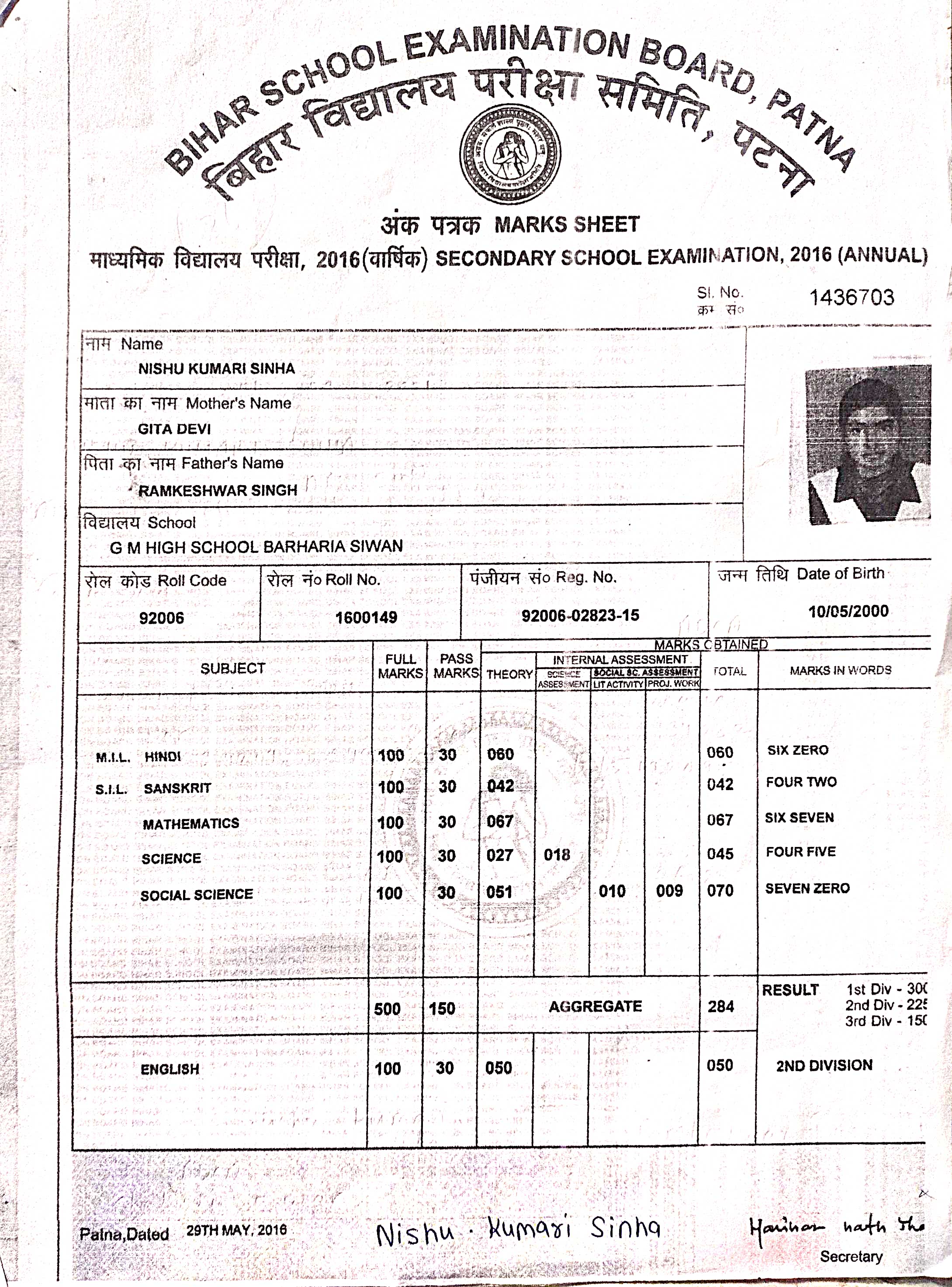 | Exam | Full Marks | Pass Marks | Marks Obtained |