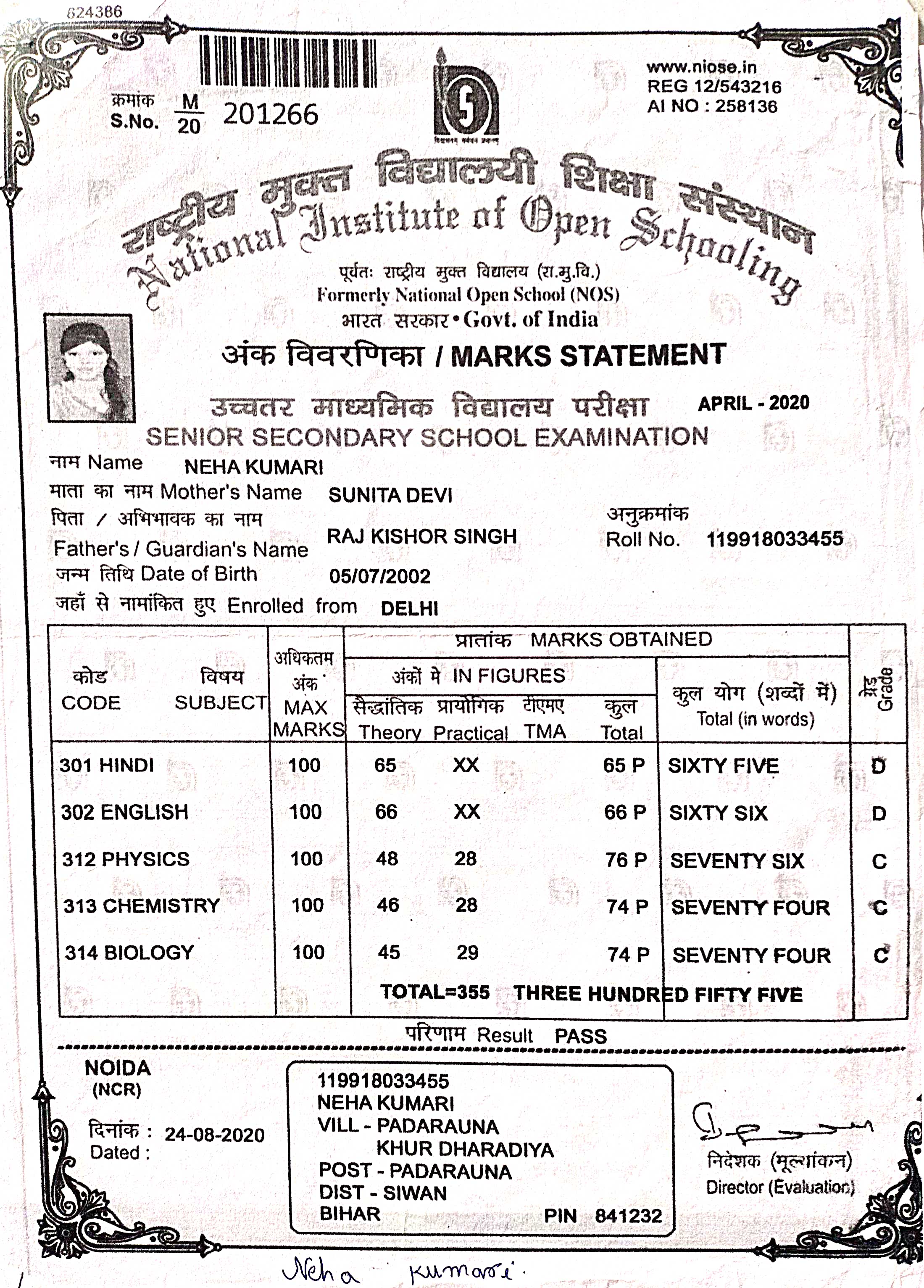 | Exam | Full Marks | Pass Marks | Marks Obtained |