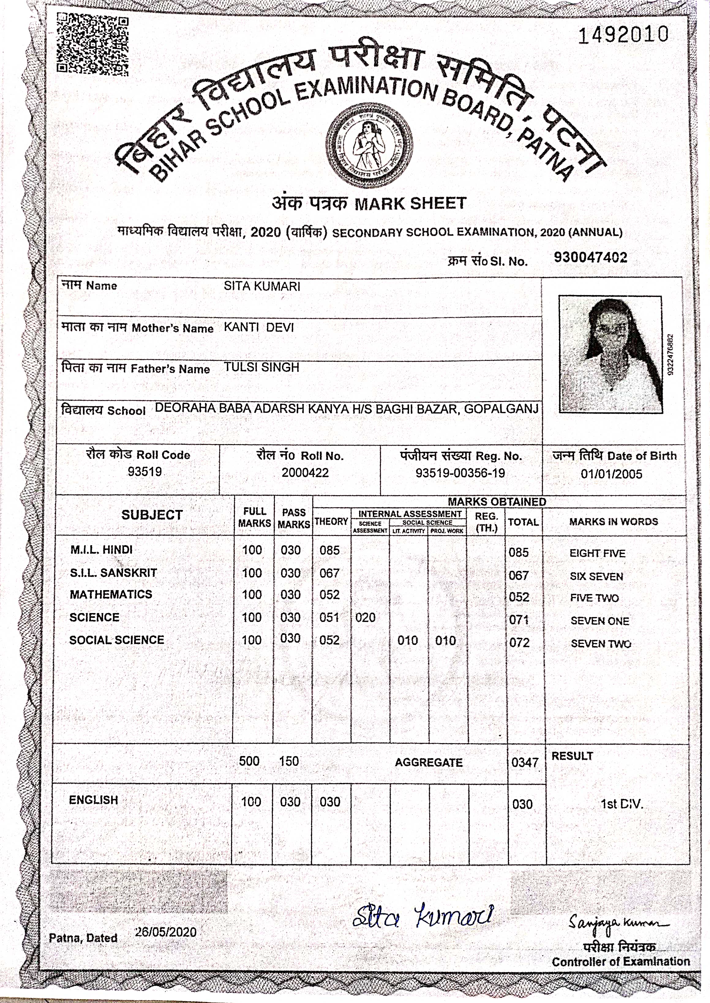 | Exam | Full Marks | Pass Marks | Marks Obtained |