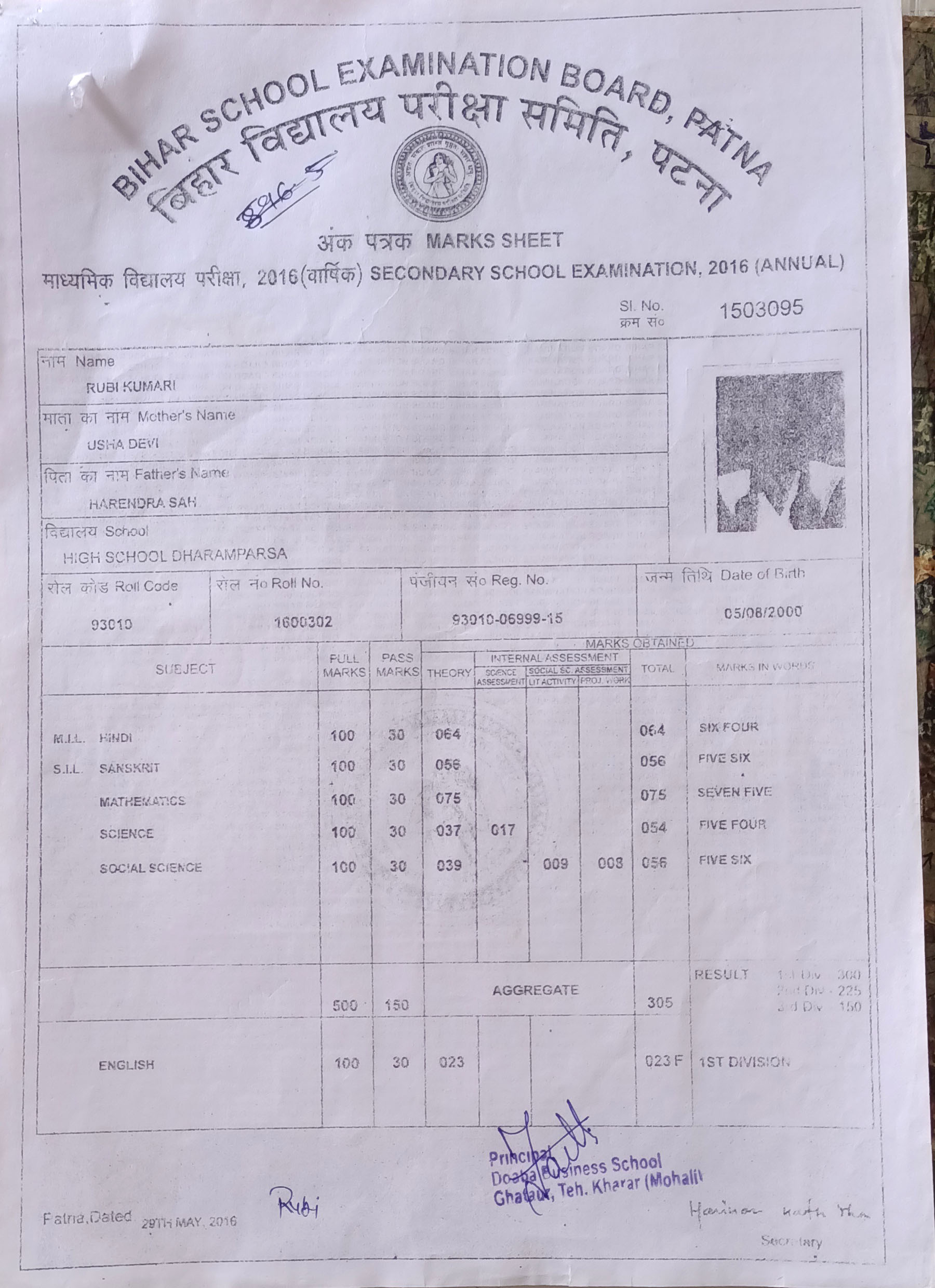 | Exam | Full Marks | Pass Marks | Marks Obtained |