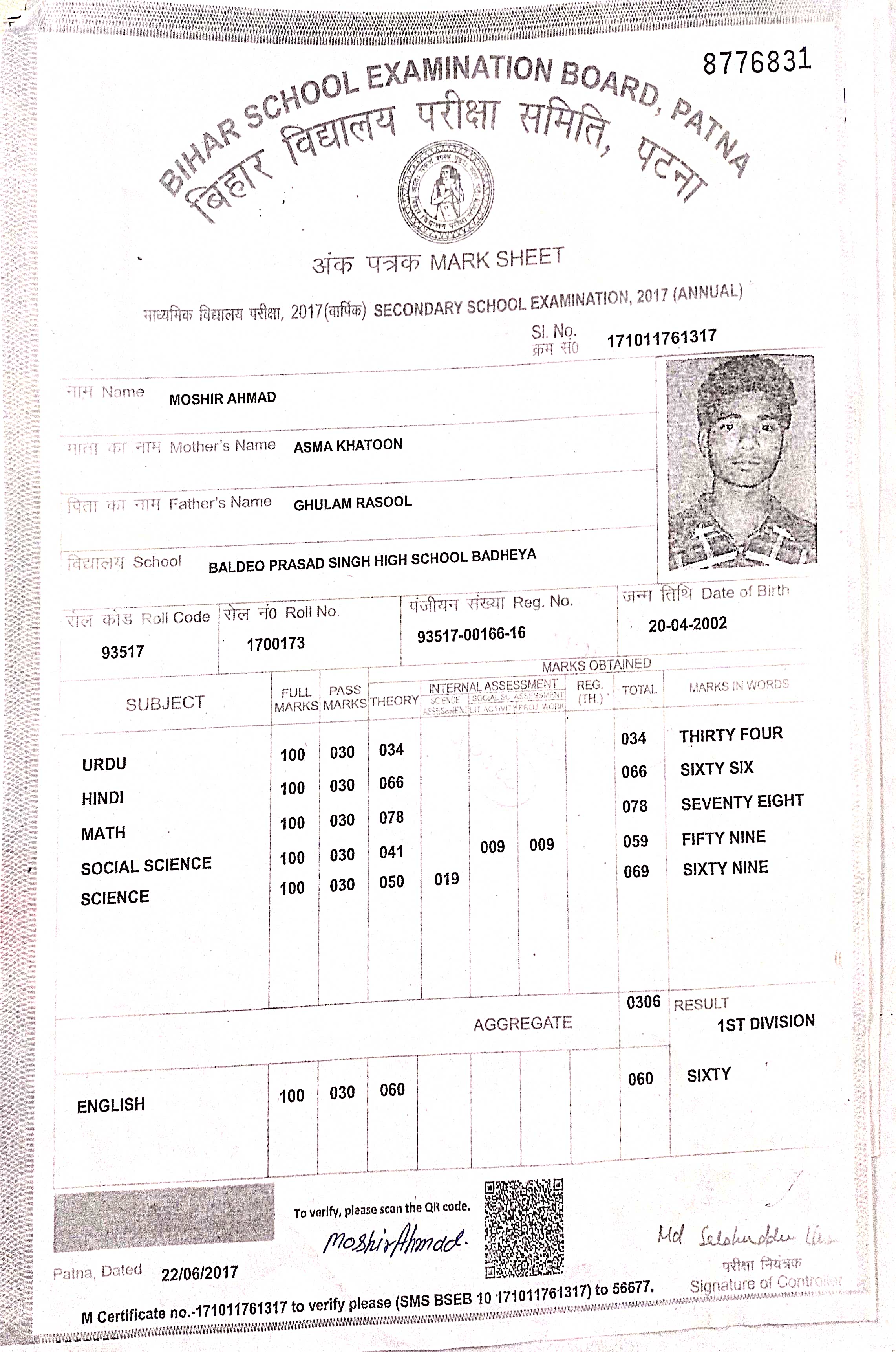 | Exam | Full Marks | Pass Marks | Marks Obtained |