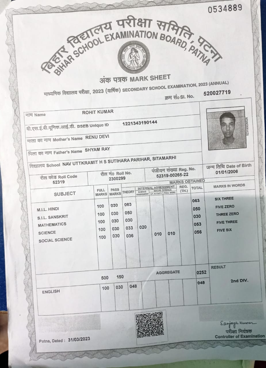 | Exam | Full Marks | Pass Marks | Marks Obtained |