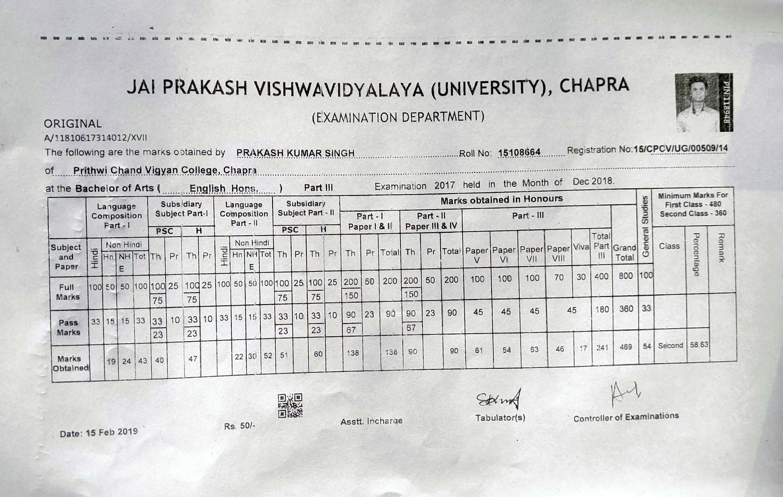 | Exam | Full Marks | Pass Marks | Marks Obtained |