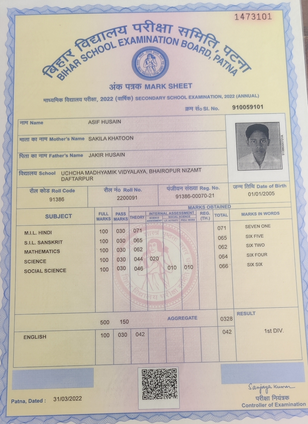 | Exam | Full Marks | Pass Marks | Marks Obtained |