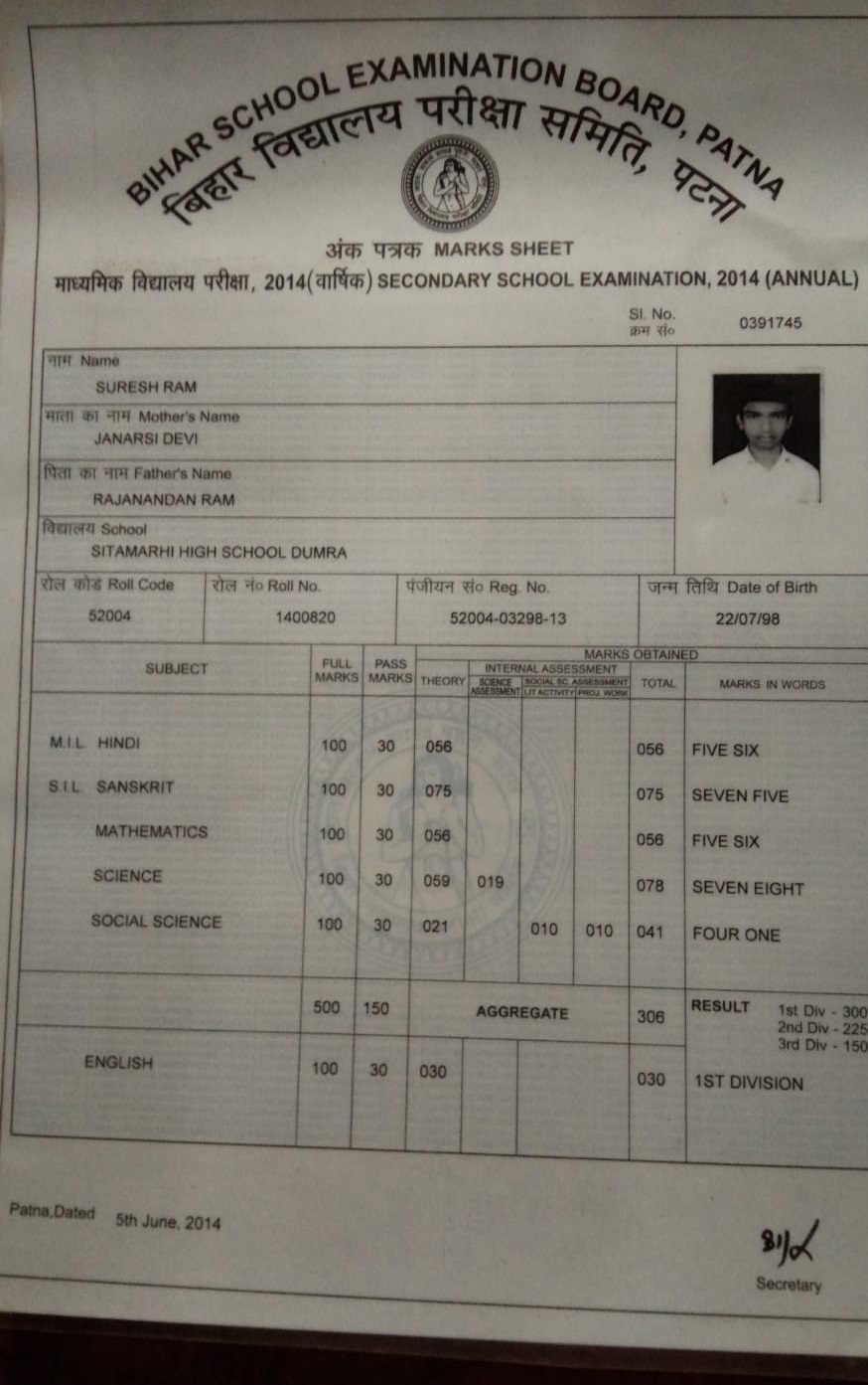 | Exam | Full Marks | Pass Marks | Marks Obtained |