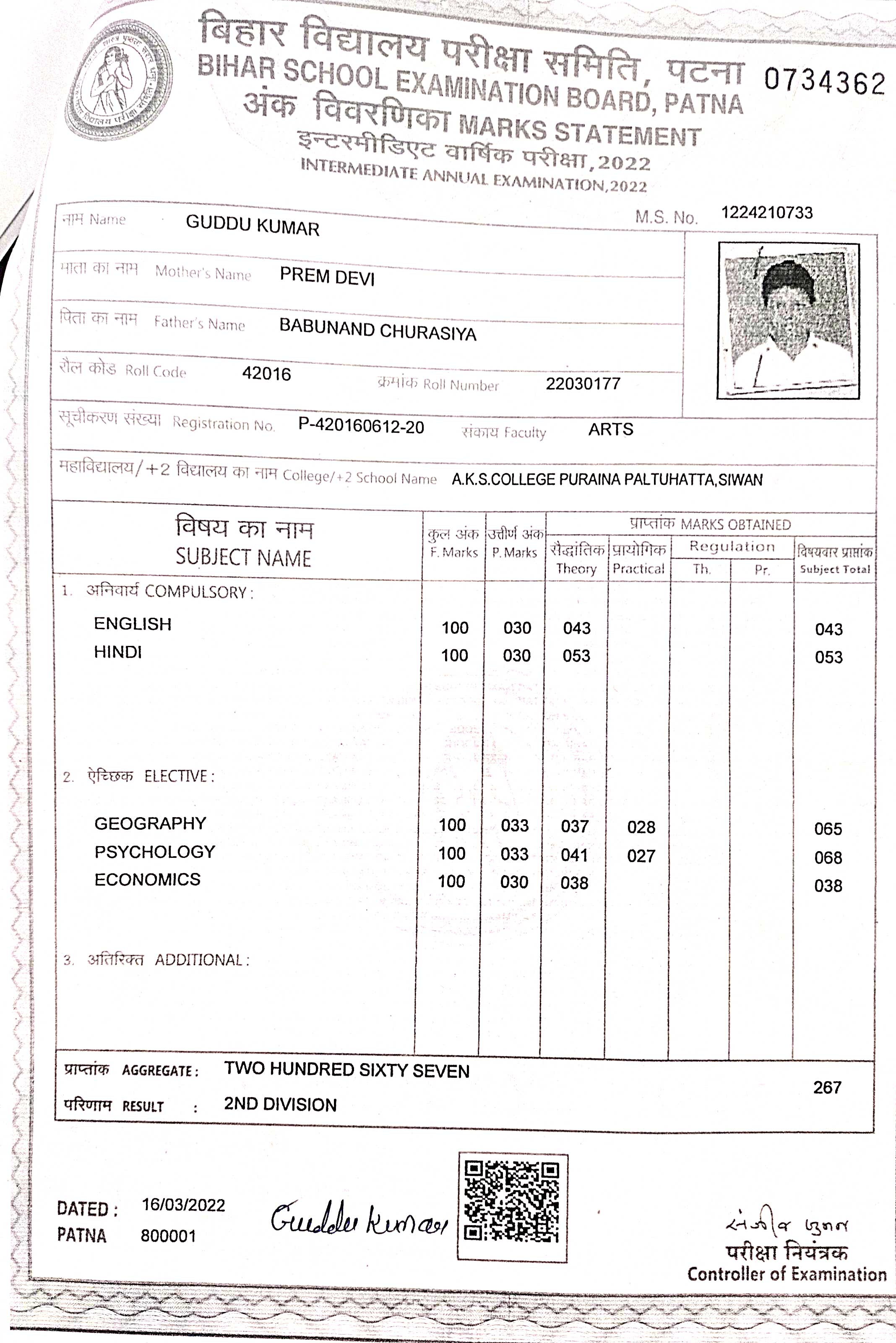 | : | Babunand Churasiya | |