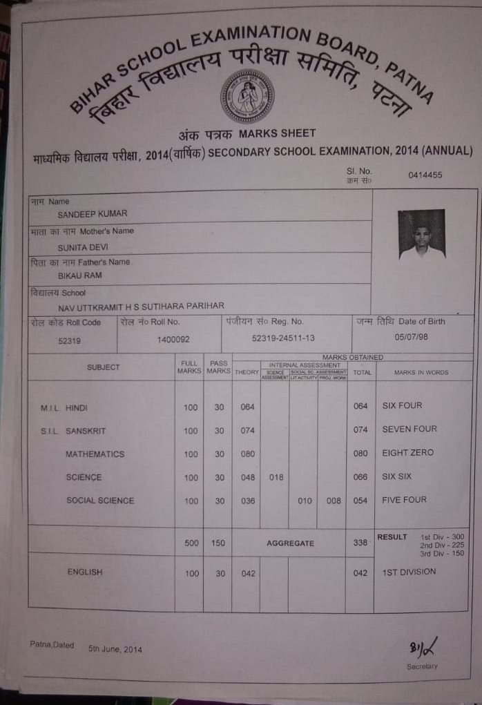 | Exam | Full Marks | Pass Marks | Marks Obtained |