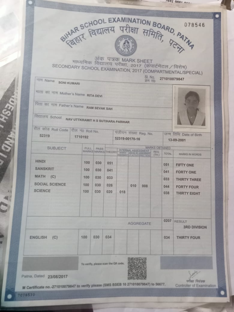 | Exam | Full Marks | Pass Marks | Marks Obtained |