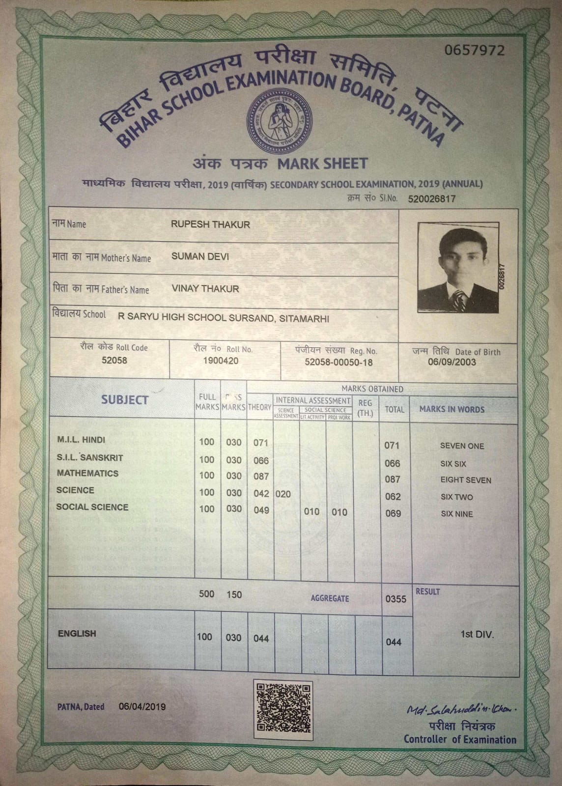 | Exam | Full Marks | Pass Marks | Marks Obtained |