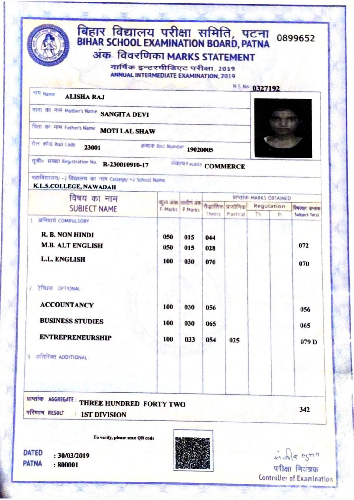 | Exam | Full Marks | Pass Marks | Marks Obtained |