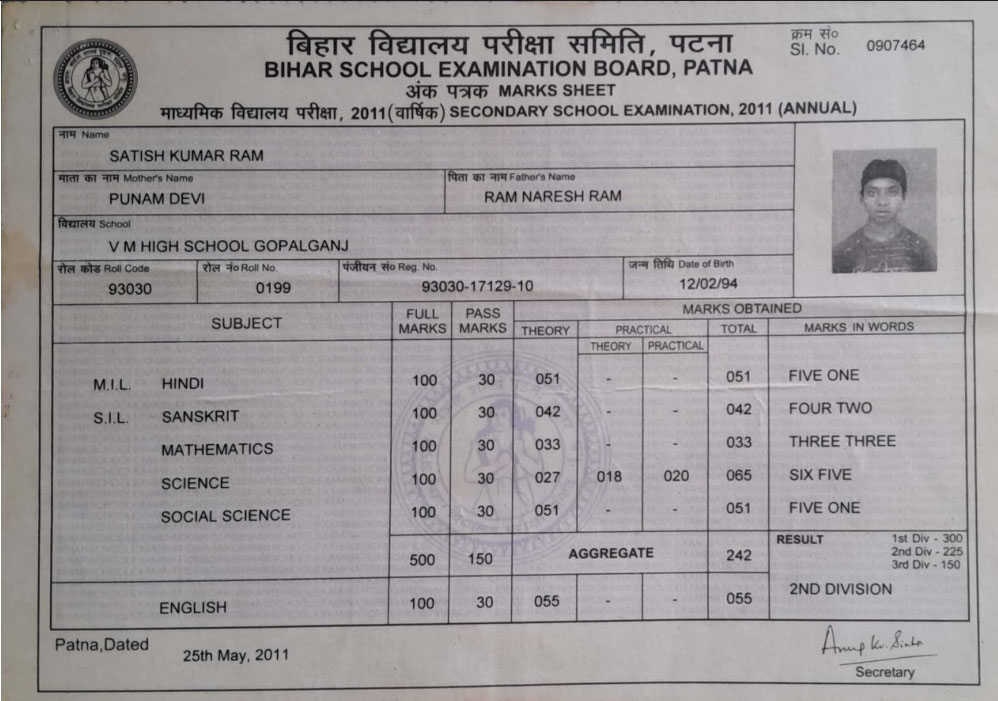 | Exam | Full Marks | Pass Marks | Marks Obtained |