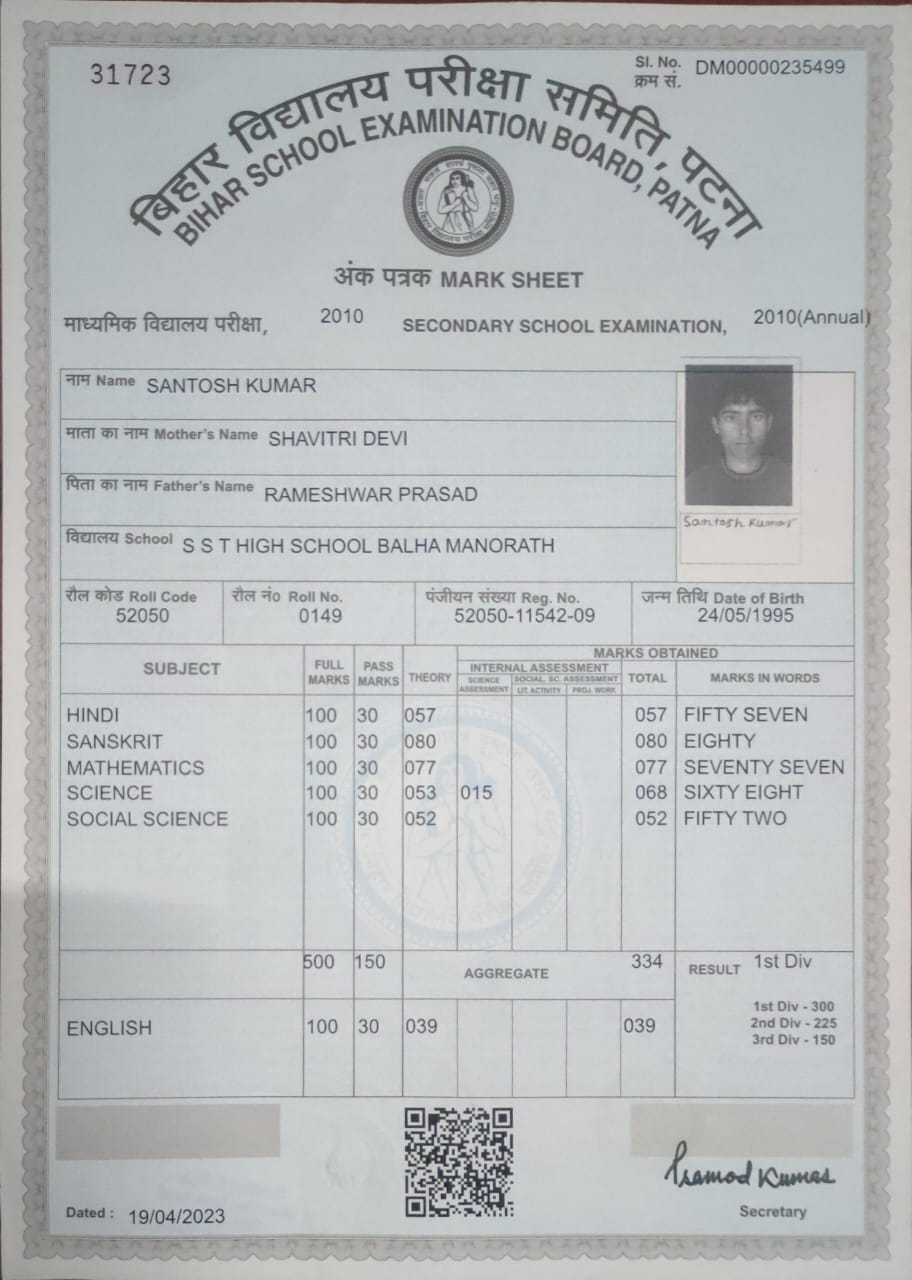 | Exam | Full Marks | Pass Marks | Marks Obtained |