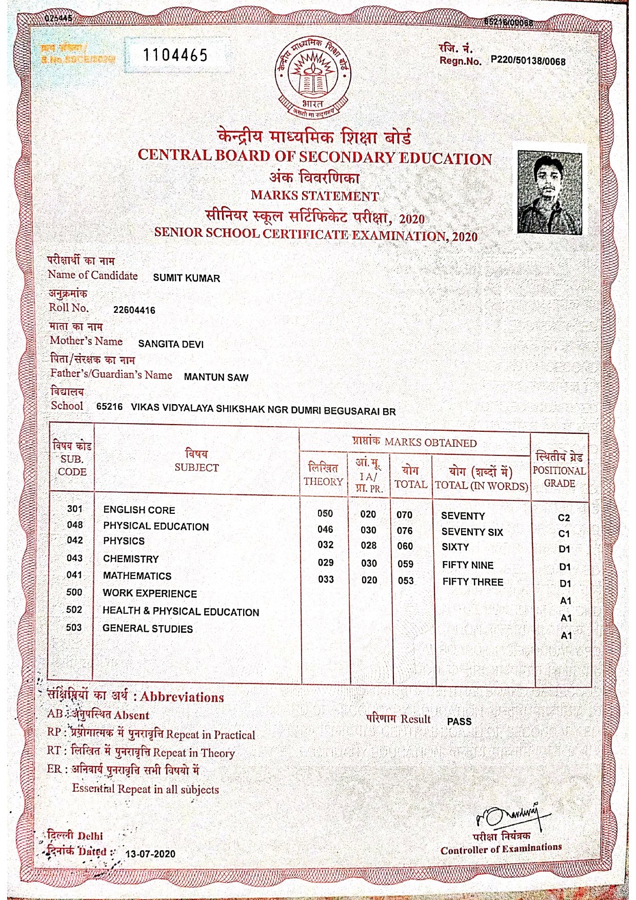 | Exam | Full Marks | Pass Marks | Marks Obtained |