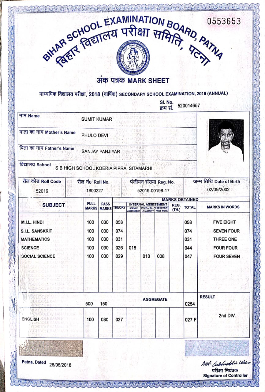 | Exam | Full Marks | Pass Marks | Marks Obtained |
