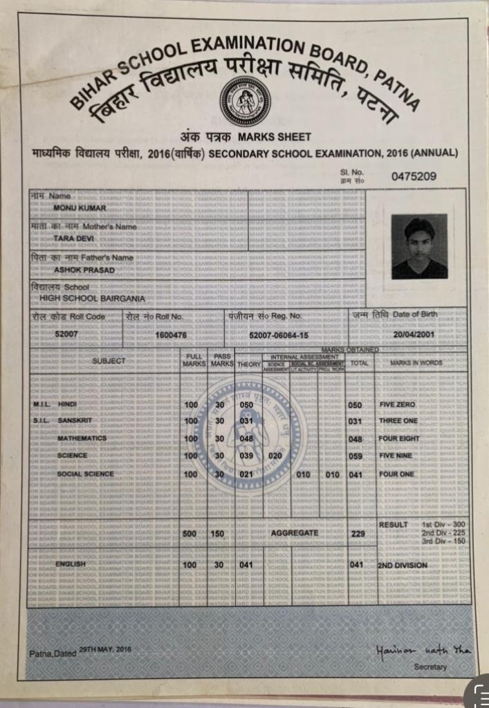 | Exam | Full Marks | Pass Marks | Marks Obtained |