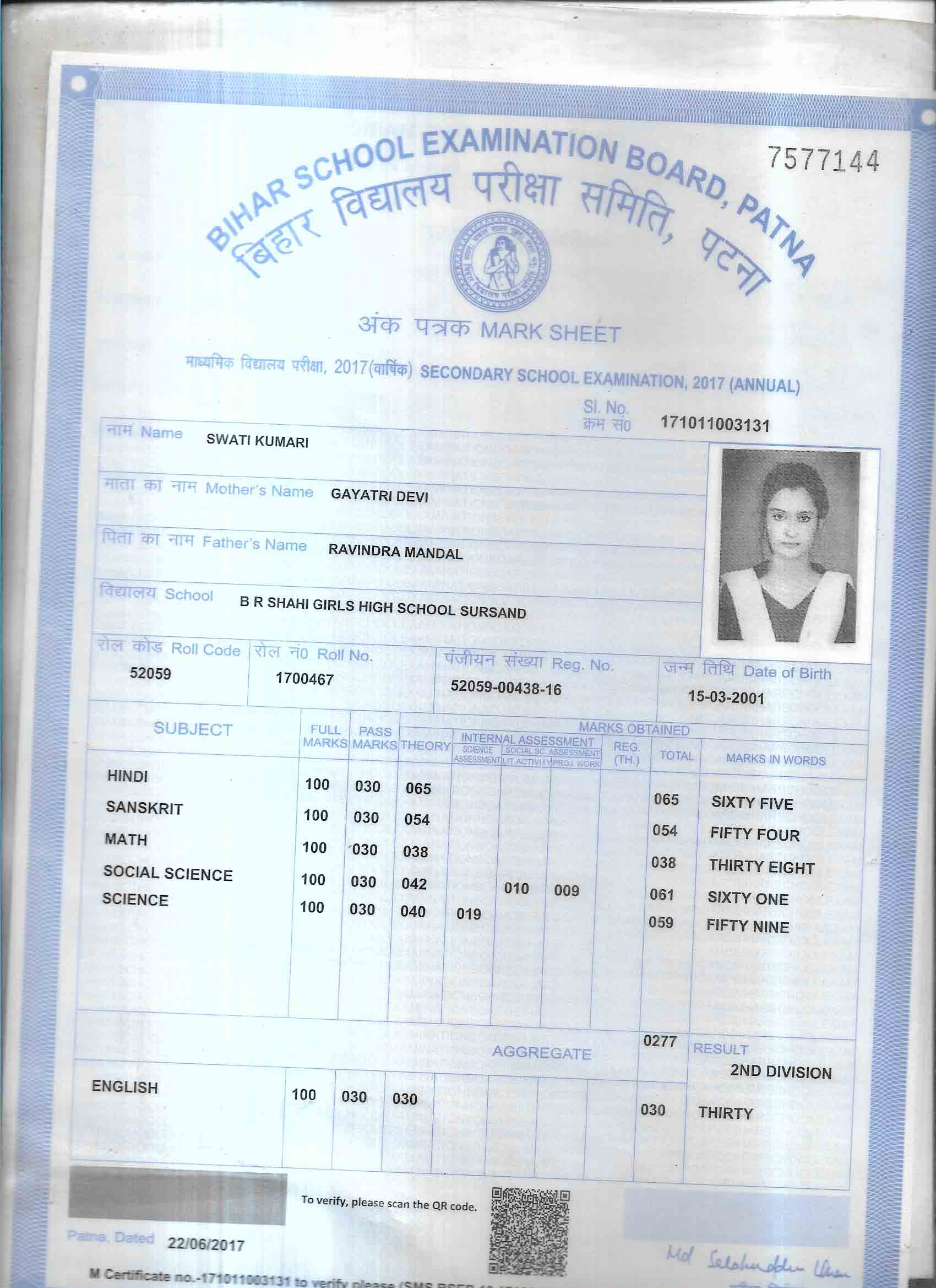 | Exam | Full Marks | Pass Marks | Marks Obtained |