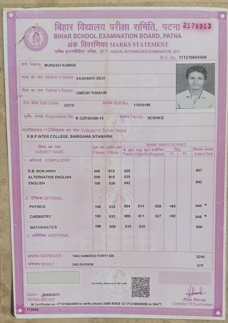 | Exam | Full Marks | Pass Marks | Marks Obtained |