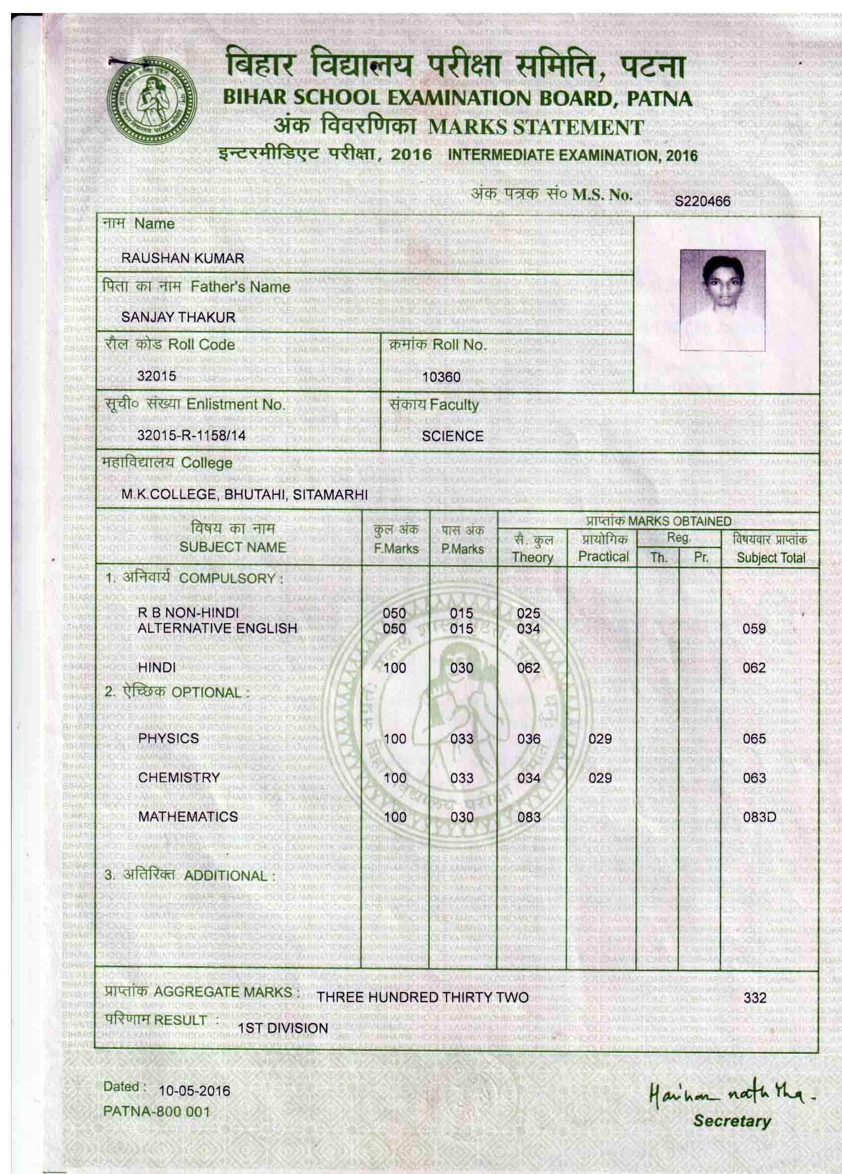 | Exam | Full Marks | Pass Marks | Marks Obtained |