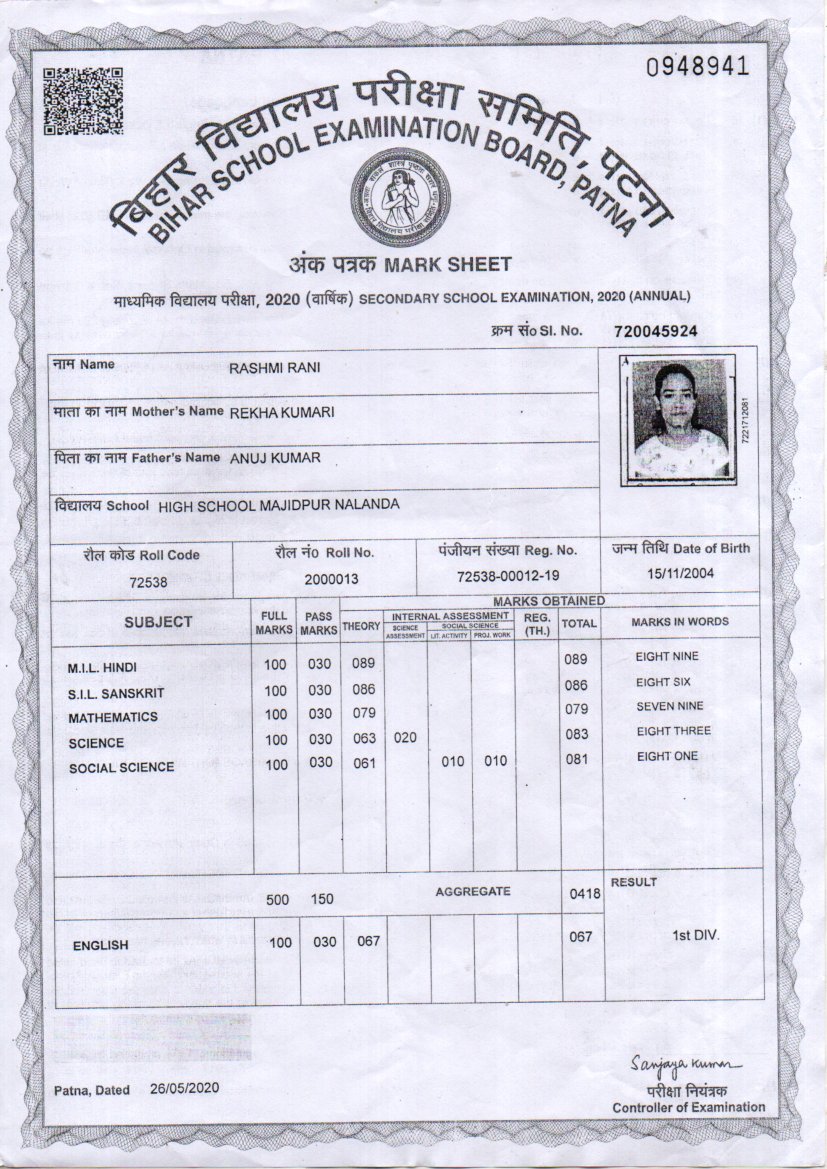 | Exam | Full Marks | Pass Marks | Marks Obtained |