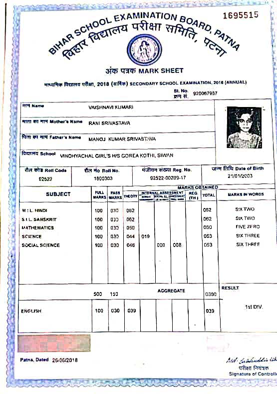 | Exam | Full Marks | Pass Marks | Marks Obtained |
