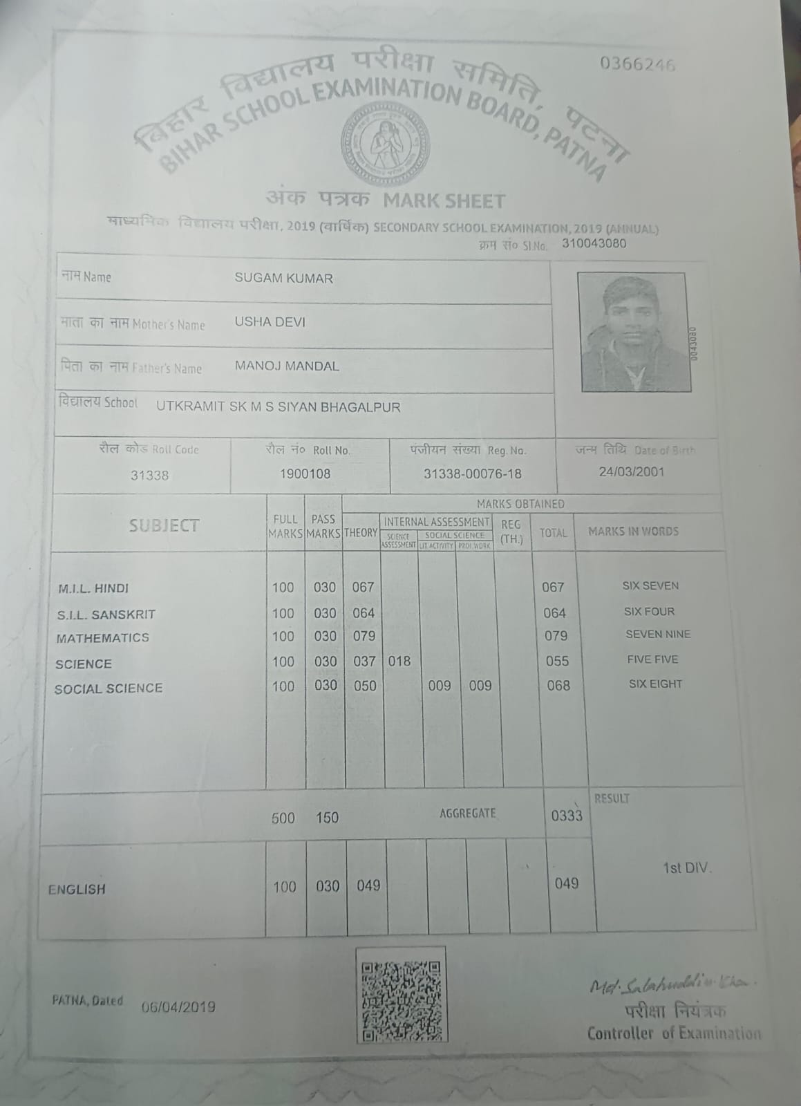 | Exam | Full Marks | Pass Marks | Marks Obtained |