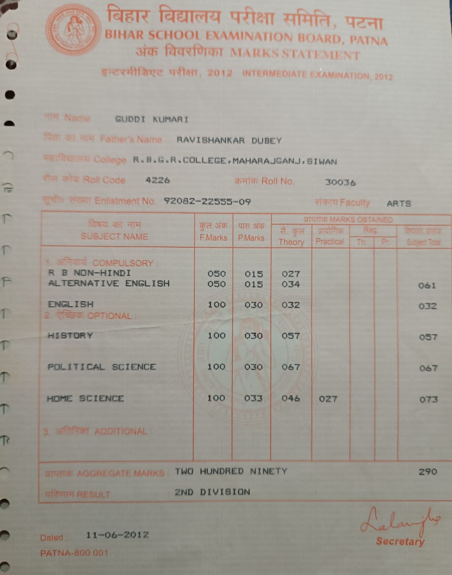 | Exam | Full Marks | Pass Marks | Marks Obtained |
