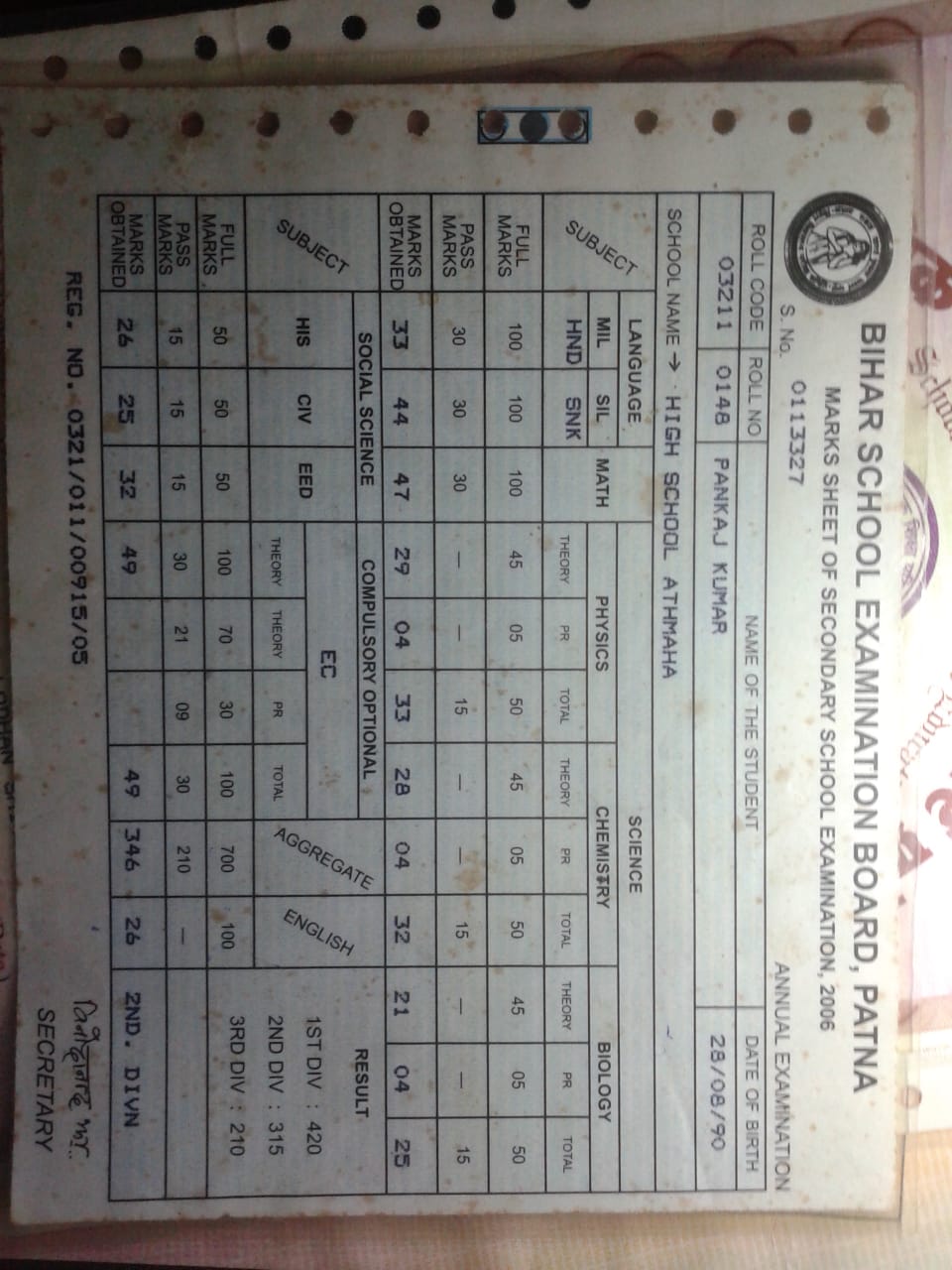 | Exam | Full Marks | Pass Marks | Marks Obtained |