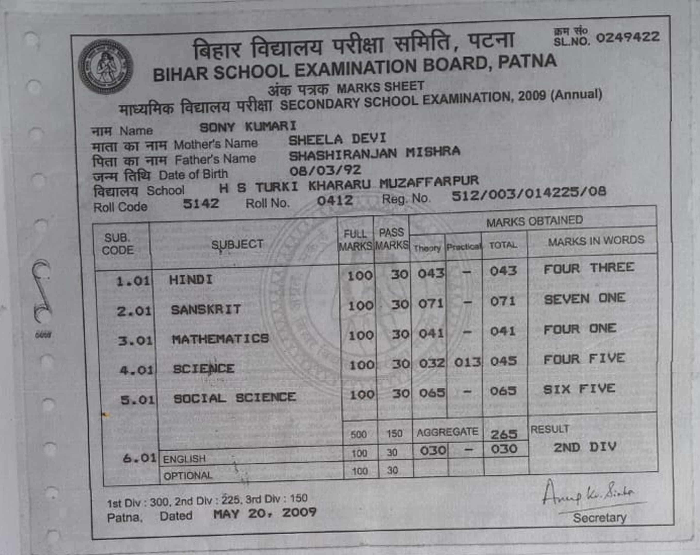 | Exam | Full Marks | Pass Marks | Marks Obtained |